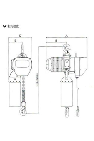 掛鉤式環鏈電動葫蘆(0.25T-5T) 尺寸參考: