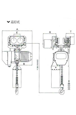 運行式環鏈電動葫蘆(0.25T-5T) 尺寸參考: